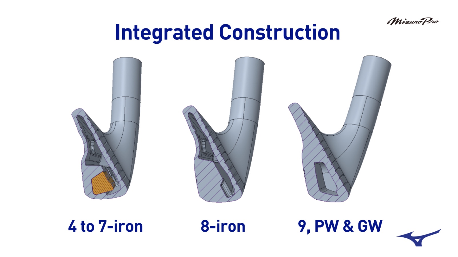 In the 4 to 8-irons the multi-thickness forged construction, supported by a hollow body design, optimises ball speed and consistency while preserving the soft, responsive Mizuno feel.