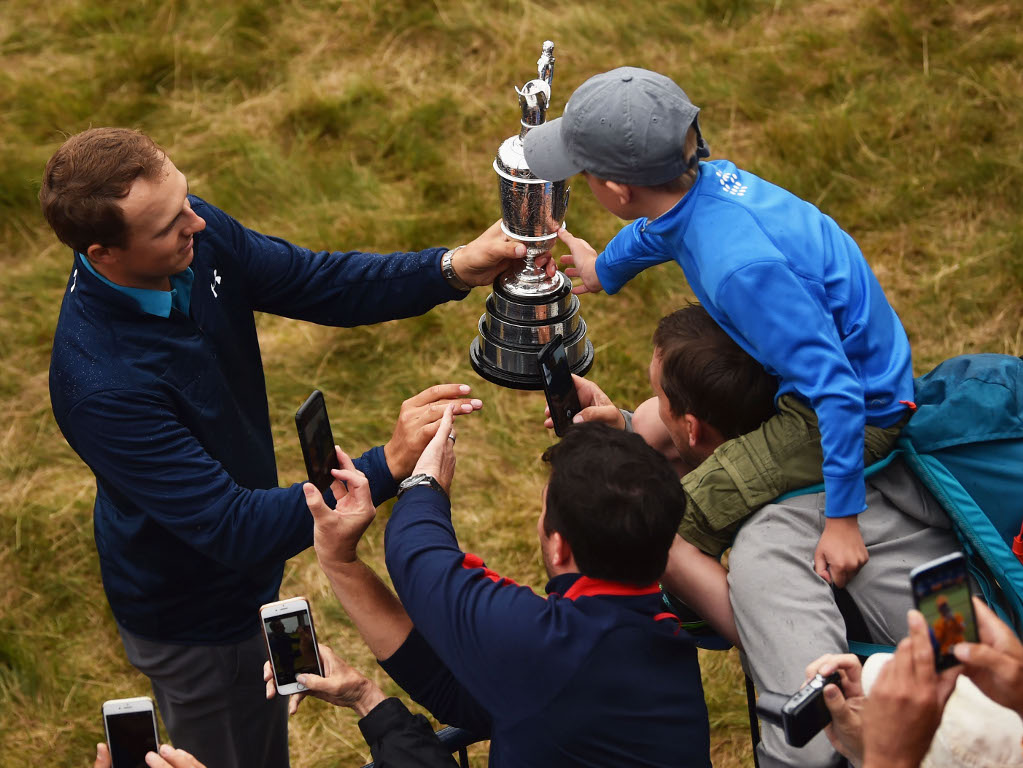 A young fan gets up close and personal with the Claret Jug